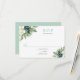 Aquarelle Succulents dans les tons verts avec fleurs blanches. Le dos de cette carte est vert pâle.