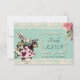 Alice in Wonderland Wedding RSVP Card accepte, décline, nombre de participants. avec lapin blanc, bleu Turquoise, dentelle et rose rose.