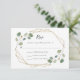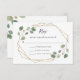 Cette carte de réponse rsvp de mariage minimaliste et tendance présente des feuilles d'eucalyptus à l'aquarelle romantique et du feuillage sur un cadre central géométrique en faux or. Un look simple mais étonnant pour votre mariage moderne.