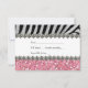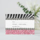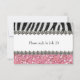 Cette carte de réponse en noir et blanc saisissante présente des IMAGES IMPRIMÉES de parties scintillant rose, des rayures zébrées et des strass (toutes IMPRIMÉES sur le produit). Un moyen abordable et flexible de solliciter les réponses de vos invités pour toute célébration.