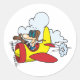 This design is a cartoon airplane. The airplane is red and yellow with a pilot. This cartoon airplane design looks great on this Stickers