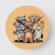A vibrant cartoon illustration featuring a cheerful team of animal friends on a bold black background. At the center stands a confident ginger cat, surrounded by playful raccoons, a smiling golden dog, and a wide-eyed owl. With bright colors, strong outlines, and expressive personalities, this design captures friendship, teamwork, and fun. A perfect choice for fans of cute, character-driven animal art with a modern cartoon style.