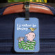 Birdwatcher luggage tag. Birding holidays. Birding vacations. "I'd Rather be Birding." Cartoon bird watcher with binoculars has a bird standing on his head!