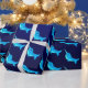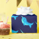 Cartoon blue narwhals pattern on Navy Blue Wrapping Paper