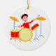 Cartoon boy playing drumset jagged edges ceramic ornament