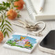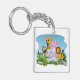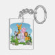 This acrylic keychain is shown with a cartoon animal buddies print.