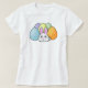 Cute wide-eyed white bunny with his (or her) colourful Easter eggs.