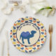 Celebrate birthdays and other special events in style with these party plates featuring a cartoon style illustration of a bactrian camel or a camel with two humps in medium blue against a desert sand coloured background with your own personalized message. The outer edge of these party plates has a pattern of cute camels in medium blue, navy blue, orange and yellow.