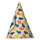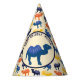 Celebrate birthdays and other special events in style with these paper party hats featuring a cartoon style illustration of a bactrian camel or a camel with two humps in medium blue against a desert sand coloured background with your own personalized message and an all over pattern of camels in shades of blue, orange and yellow.