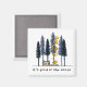 Need a little mental escape to decompress from the daily grind? Why not go off-the-grid and head out into the woods and sleep under the stars. This whimsical cartoon camping magnet features a pup tent pitched under tall pine trees in front of a cozy campfire with swirling wisps of smoke.