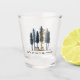 Need a little mental escape to decompress from the daily grind? Why not go off-the-grid and head out into the woods and sleep under the stars. This whimsical cartoon camping shot glass features a pup tent pitched under tall pine trees in front of a cozy campfire with swirling wisps of smoke.