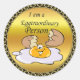 cartoon character fried egg with big eyes and a smile in his yellow yolk.