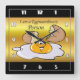 cartoon character fried egg with big eyes and a smile in his yellow yolk.