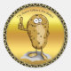 Potato cartoon character with big eyes and a smile with his thumb up in the air.