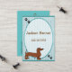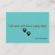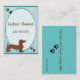 Very cute children calling card, in mint green stripe, a sweet cartoon dachshund and black little paw prints. Text is fully customizable in style, size and colour.