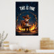 Cartoon Dog Sitting at Table with Coffee Surrounde Poster