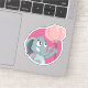 Custom cut vinyl sticker with an illustration of a cute little elephant girl with pink balloons; animal cartoons motives for kids