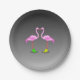 Cartoon Flamingos Wearing Colourful Winter Boots Paper Plate