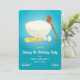 A baking birthday party invitation showing smiling butter, eggs, wooden spoon, and flour bowl characters. This food themed invitation has a blue background and a fun dot pattern on the back. Simply customize the words, add this invite to your cart, and have fun party.