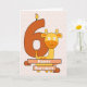 Celebrate a child’s sixth birthday with this adorable card. A cartoon baby giraffe and orange number six candle with a chevron background is especially cute for the special occasion. Design © 2015 Julia Bryant.