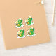 Set of four cut vinyl stickers with an illustration of a cute green dragon guarding a treasure; fantasy animal cartoon motives for kids; with custom text template for your child's name or custom message