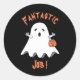 A fun and cute cartoon Halloween reward sticker . The text reads "Fantastic Job !" in orange letters . Keep it as it is , or replace the text with your own .