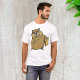 A cartoon like hamster holding a case. This design looks really effective on this Mens T-Shirt