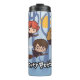 Cartoon Harry, Ron, & Hermione Flying In Woods Thermal Tumbler
