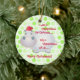 The text on this cute hippopotamus Christmas ornament is easy to customize. The festive red and green and cartoon hippo design makes this a cute and fun holiday Xmas ornament. To change the text use the personalize options. For more extensive changes to the ornament, including changing the font, font size, font colour, text placement use the customize it option. The text currently reads "I want a hippopotamus for Christmas, only a hippopotamus will do".