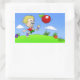Cartoon illustration of a boy kicking a tomato. sticker