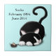 Cartoon of a black and white kitty asleep with it's toy mouse. Fun and sure to bring a smile whenever you see it. Customizable text and background colour.