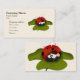 A business card featuring a cartoon of a ladybug standing on a green leaf.