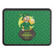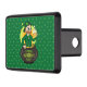 Cartoon leprechaun in a pot of gold holding a pint trailer hitch cover