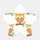 Cartoon Little Owl On Branch Pattern Star Sticker