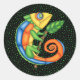 Cartoon Lizard Holding Leaf Vibrant Colours Dots Classic Round Sticker