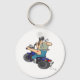 This design is a cartoon man on a motorcycle. The man is riding off looking behind him. He has a red love heart tattoo on his arm. This cartoon man on a motorcycle design looks great on this Keychain