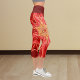 Cartoon Mandala Flower Red and Orange Capri Leggings