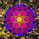 This funky mandala flower design features yellow, pink, and blue in a cartoon style. Trippy geometric visuals for the modern hippie or lover of vibrant colors!