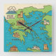 Cartoon Map of Greece – Illustrated Landmarks Square Wall Clock