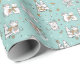 On this Christmas wrapping paper, several different images of cute little mice enjoying a Holiday celebration are placed on a medium teal background. Perfect for Christmas and the New Year season, and kids will love it.