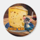 Cartoon Mouse in Love with a slice of Cheese on a Magnet