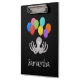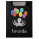 This Clipboard features illustration of funny cartoony Octopus smiling and holding eight colourful balloons in each tentacle. Nice and cute Back to School gift. Personalize your name on the front and back of the Clipboard.