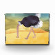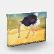 In this whimsical cartoon, an ostrich playfully buries its head in the sand, adding a humourous touch to any setting. This lighthearted artwork captures the essence of the classic 'ostrich with head in the sand' trope with a fun and colourful twist.