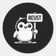 Cartoon Penguin Holding “RESIST” Sign – B & W Classic Round Sticker