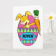 Custom front, add your text, Easter greeting card for a nephew. Card front has a custom text area for a name or you can change the relationship (i.e. brother, grandson, etc.). Cute and very colourful illustration of a bunny grasping a big fresh carrot in orange and green colours. Art, image, and verse copyright © Shoaff Ballanger Studios, 2022.