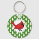Cartoon Red Cardinal on Green White Pines Pattern Keychain