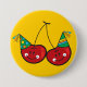 Cartoon Red Cheeky Cherries with Party Hats Button