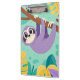 Cartoon sloth hanging upside-down from a branch with a sleepy grin. Exaggerated googly eyes