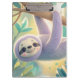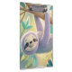 Cartoon sloth hanging upside-down from a branch with a sleepy grin. Exaggerated googly eyes