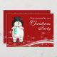Funny looking cartoon Frosty the Snowman on a red snowy background. Very cute and fun Christmas party invitation.